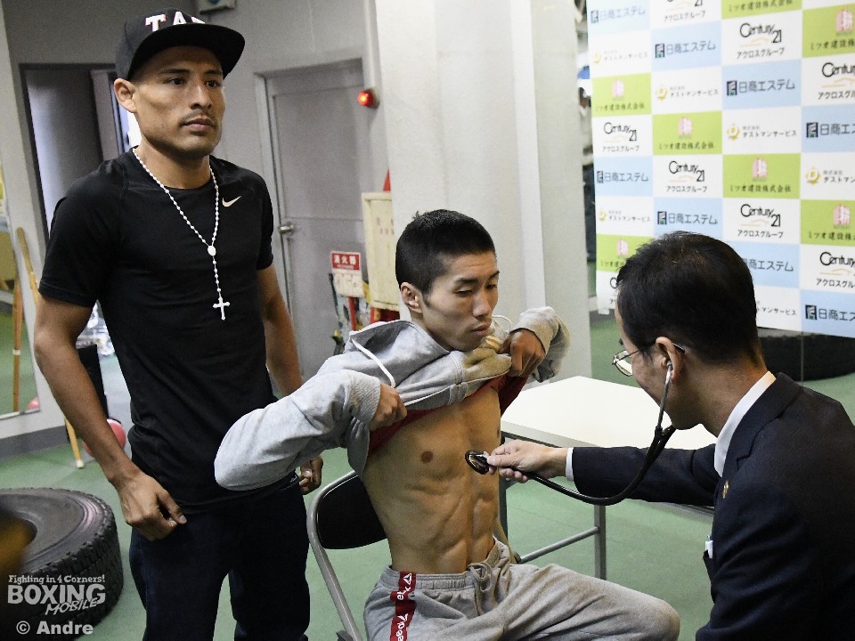 WBO世界ミニマム級タイトルマッチに出場するチャンピオンの山中竜也(真正)と同級4位で挑戦者のモイセス・カジェロス(メキシコ)が15日、神戸市内の真正ジム事務所で予備検診に臨んだ。試合は3月18日(日)、神戸ポートピアホテルの特設会場で開催される。