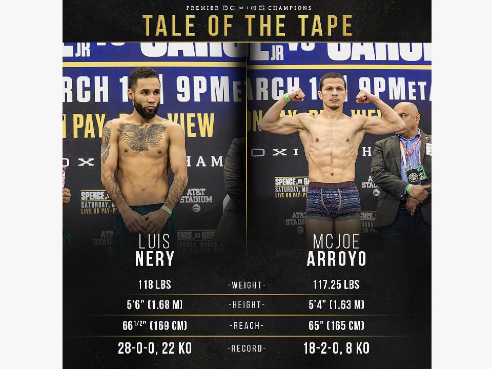 アンダーカードでは前WBC(世界ボクシング評議会)バンタム級王者のルイス・ネリ(メキシコ)が、元IBF世界スーパーフライ級王者マックジョー・アローヨ(プエルトリコ)を相手にバンタム級10回戦を行う。