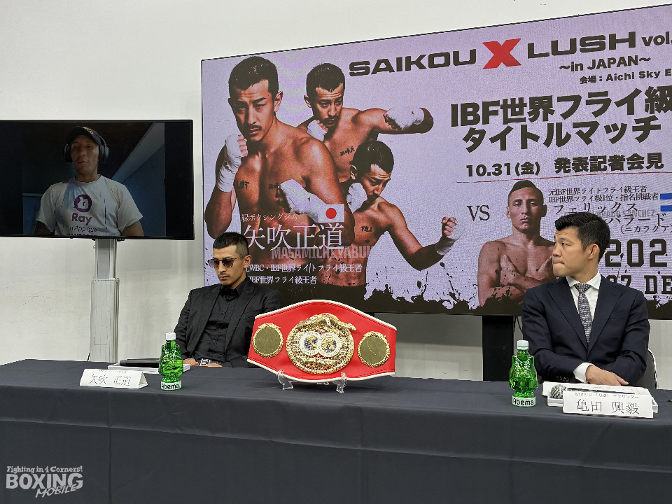SAIKOU×LUSHプロモーションは31日、都内で記者会見を開き、IBF(国際ボクシング連盟)フライ級王者・矢吹正道(33=緑)の次戦を正式発表した。