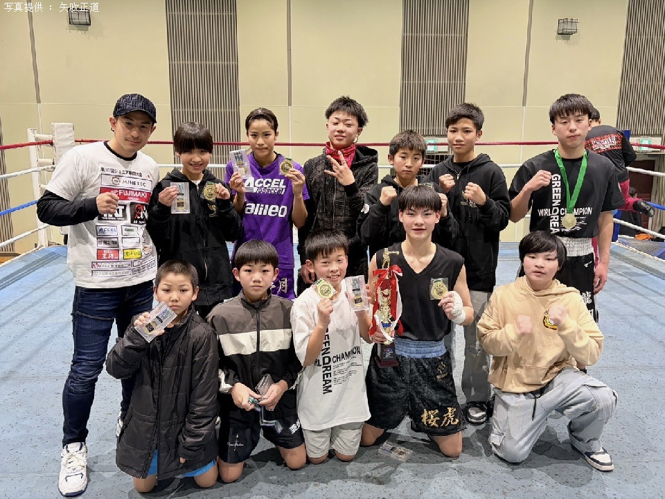 愛知県西尾市の西尾勤労会館で8日、IBF(国際ボクシング連盟)世界フライ級王者の矢吹正道(緑)主催による「第10回ジュニア拳闘大会」が開催された。中日本を中心に、神奈川県や関西からもキッズボクサーが参加した。
