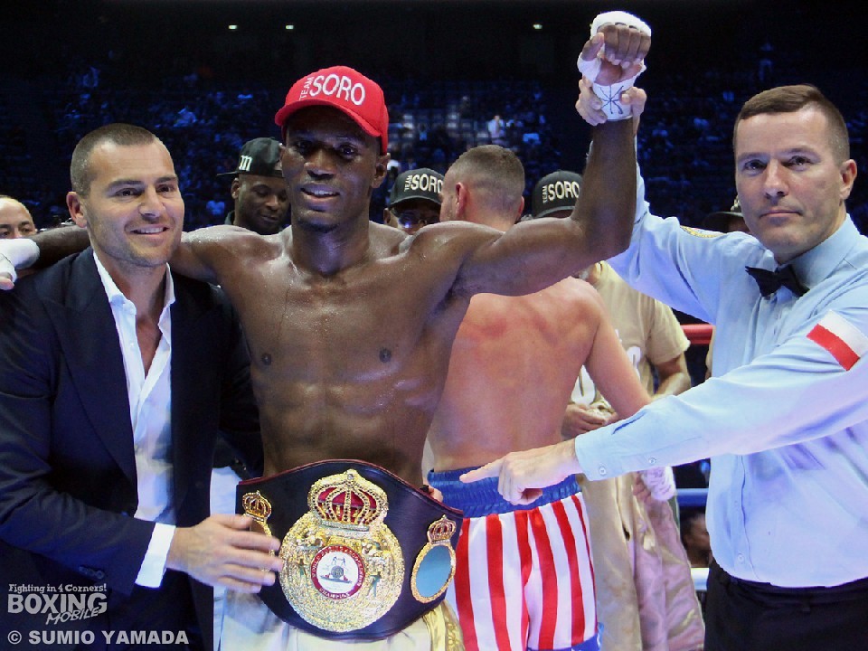 WBA世界スーパーウェルター級ゴールド王者のミシェル・ソロ(フランス)は、同級15位のセドリック・ビツ(フランス)を相手に初防衛戦。序盤はサウスポーのビツが足を使い、ソロがジャブから追う展開。4回に入ると次第にソロの攻勢で、ビツはロープに押し込まれる。そして迎えた5回、残り1分となるところでソロの連打でバランスを崩したビツをレフェリーが抱きかかえ試合終了。ソロが5回40秒TKO勝利でゴールド王座の初防衛に成功した。ソロの戦績は38戦35勝(24KO)2敗1分。敗れたビツは51戦47勝(19KO)4敗となった。