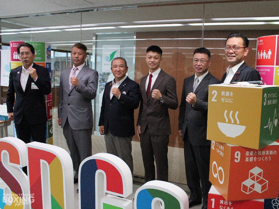 本村市長は「中谷選手の活躍はテレビ等で拝見している。4月と8月に予定されていた試合が延期となり、コンディションを作るのは大変だと思うが、自分に負けずに頑張ってほしい。試合当日は最高のパフォーマンスを期待している。相模原市もコロナで苦しんでいるが、是非とも世界のベルトを獲って市民に大きなプレゼントを届けてほしい」とエールを送った。その後、中谷と本村市長は時間が過ぎるのを忘れてボクシング談議に花を咲かせた。