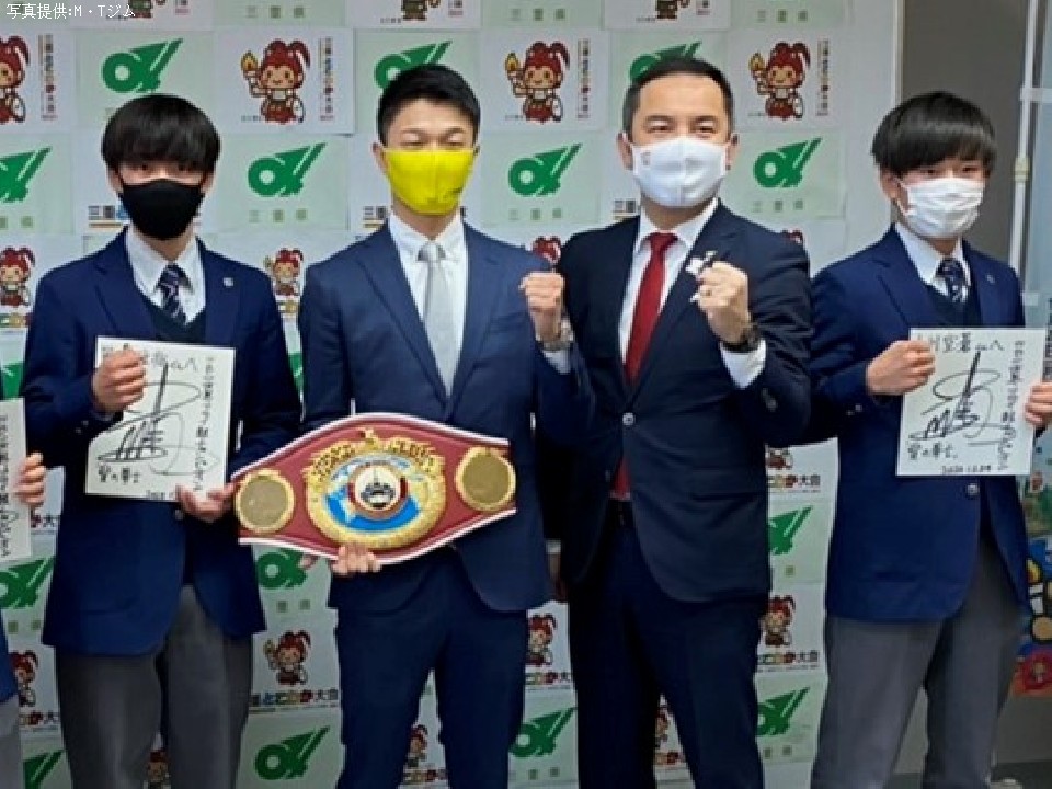 WBO(世界ボクシング機構)フライ級王者の中谷潤人(22=M・T)の世界王座獲得を記念して、中谷が所属するM・Tボクシングジムのホームタウンである神奈川県相模原市役所でWBOチャンピオンベルトや試合で使用したグローブ、コスチュームなどを展示している。