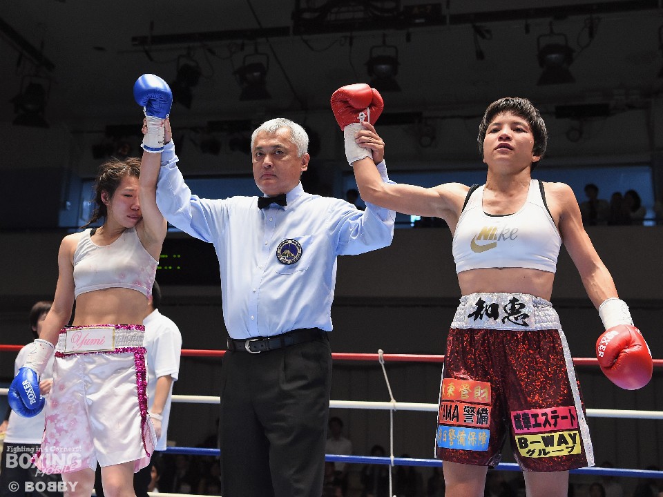 日本女子ミニマム級王座決定戦が31日に後楽園ホールで開催された「DANGAN」のメインイベントで行われ、同級1位の日向野知恵(34=スパイダー根本)と同級2位の成田佑美(29=姫路木下)が空位のベルトを争った。試合は成田が距離を作りながら右ストレートをヒットし好スタートを切った。