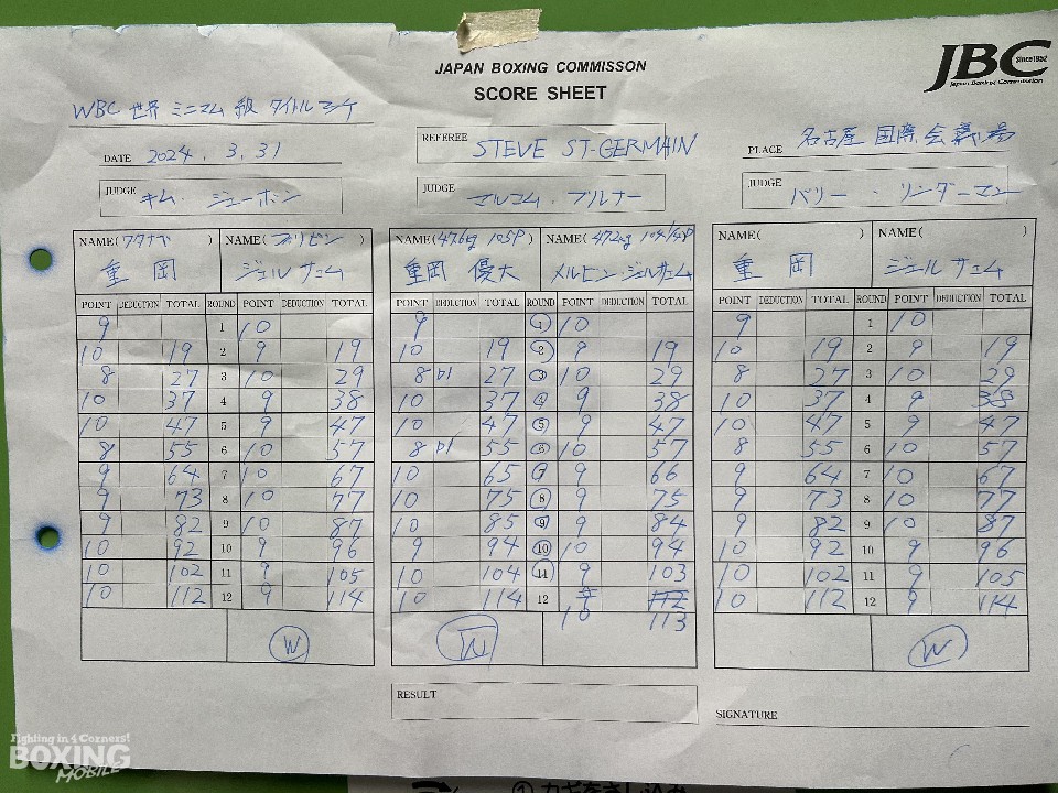判定は、ジャッジの判断が1-2と割れたことに関して、「2回も倒されてるし、負けです」と潔く、新チャンピオンを称えた。