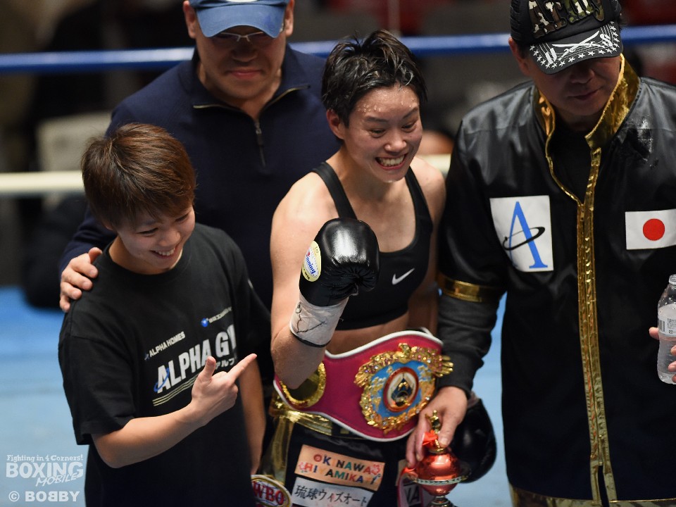 東洋太平洋女子フライ級王者のチャオズ箕輪(ワタナベ)とWBOアジアパシフィック・ライトフライ級王者の天海ツナミ(アルファ)が8日、後楽園ホールで開催された「VICTORIVA.1」でWBO女子世界ライトフライ級王座をかけて激突した。前王者の藤岡奈穂子(T&H)が返上して空位になった同王座。新チャンピオンに就いたのは――。