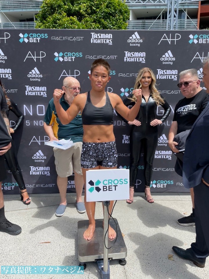 WBOインターナショナル女子スーパーフライ級王座決定戦の前日計量が4日、オーストラリア・ブリスベンで行われ、OPBF東洋太平洋女子フライ級王者のチャオズ箕輪(35=ワタナベ)とテイラー・ロバートソン(24=豪)が秤に乗った。
