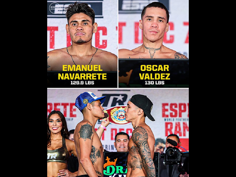 WBO世界スーパーフェザー級王者エマニエル・ナバレッテ(29=メキシコ)と同級暫定王者オスカー・バルデス(33=メキシコ)が日本時間の7日、米国・アリゾナ州で王座統一戦の前日計量に臨んだ。両チャンピオンとも、早くもヒートアップ、メキシカン同士が火花を散らした。