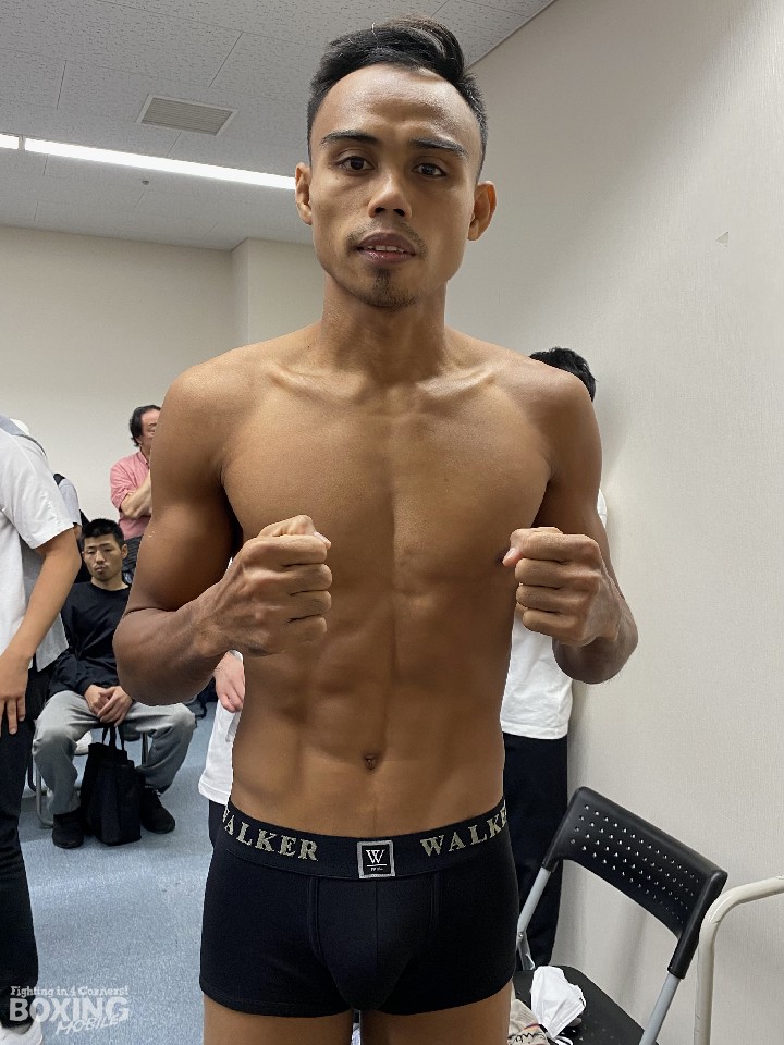 元世界ランカーのサンティシマは、600gアンダーの56.5kgで秤を降りた。この試合に向けて1ヶ月間、日本でトレーニングを積んできたようで「万全に仕上がった。明日はエキサイティングな試合になるが、私がベルトを獲る」と静かに闘志を燃やした。