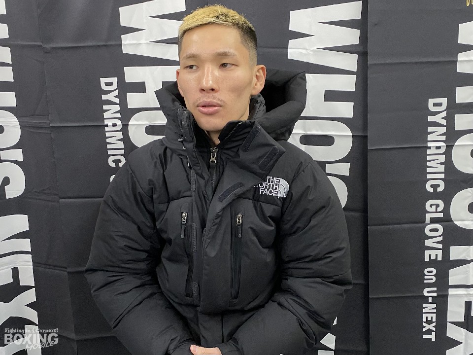 1月24日(金)に有明アリーナで行われたWBOアジアパシフィック・ミニマム級タイトルマッチ(小林豪己vs高田勇仁)は配信で観戦した。「高田選手がこの階級で一つ抜けたが、自分もそこに食い込めるように、明日は内容を見せる。世界を獲っている選手は、丁寧に確実に勝っている。一番の敵は自分。自分に勝てれば、自ずと岡田選手に勝てる」と意気込んだ。