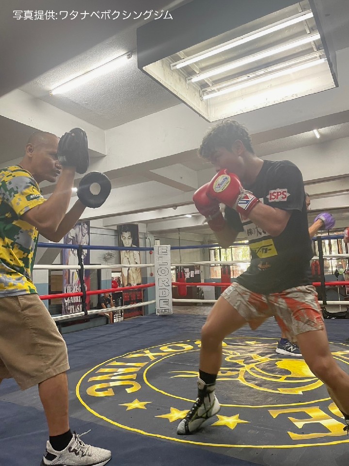 合宿期間中のトレーニングは、エロルデジムのフィリピン人選手らとともに、毎朝6時からの7キロのロードワークから始まる。昼12時からは、シャドーとスパーリングを中心とする実践形式の練習が組まれ、16時からは、6ラウンドから12ラウンドのシャドーに時間を注いでいる。