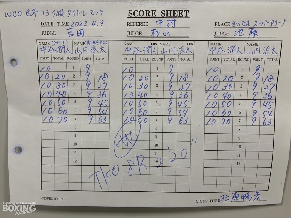 ルディ・エルナンデス・トレーナーの指示で、「中間ではなく近くか遠くの位置を意識した。長い距離を山内に慣れさせたとこで、近づくことで相手の距離感を惑わせた」と話した中谷は、「アッパーの練習をしてきた、練習どおり出せた」と試合を総括した。