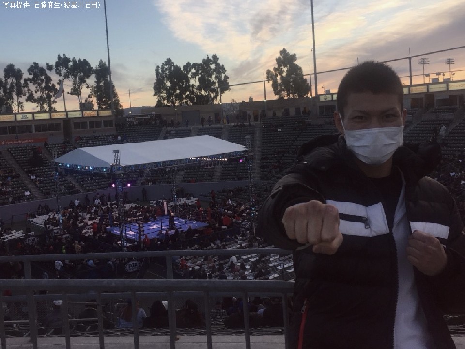 石脇は、現地3月9日にロサンゼルスで開催されたWBC世界ウェルター級タイトルマッチ(王者ショーン・ポーター(米国)vsジョルデニス・ウガス(キューバ))を観戦した。「アメリカの試合会場の雰囲気や、お客さんの盛り上がり方などを生で見て、近い将来アメリカ中で盛り上がる試合がしたい、と強く思いました」と夢は膨らんだ。