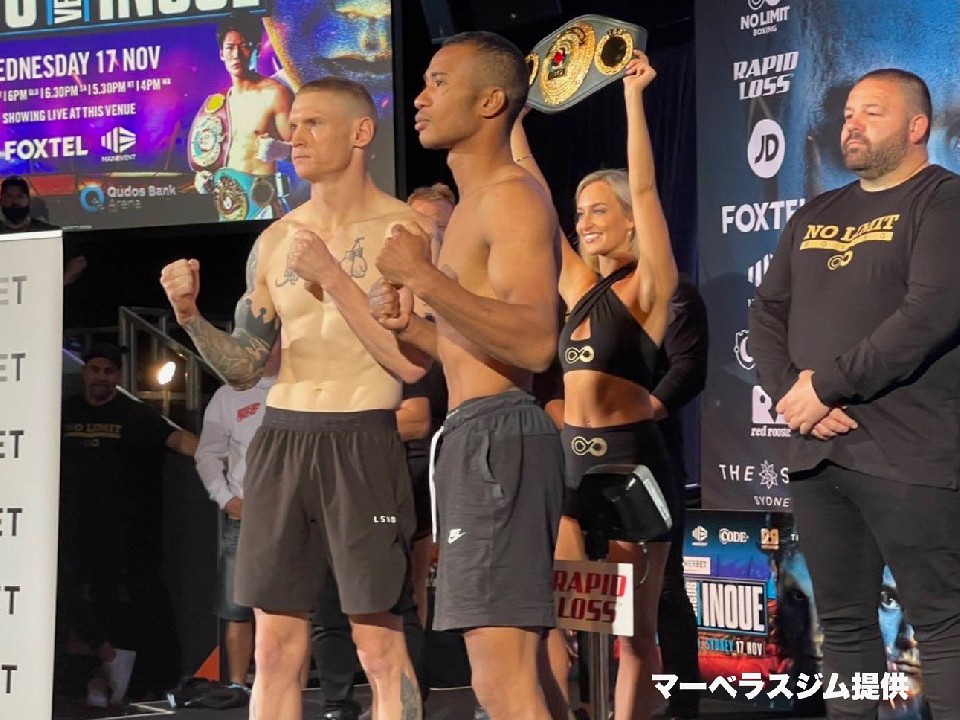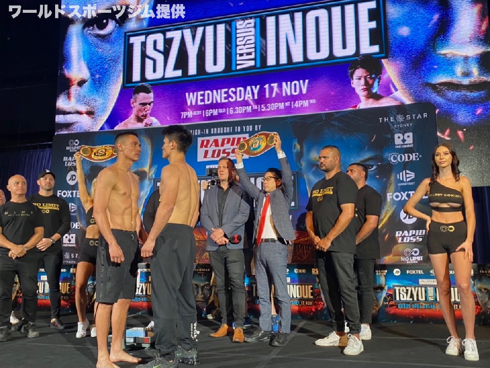 WBOアジアパシフィック・スーパーウェルター級王者の井上岳志(31=ワールドスポーツ)とWBO世界同級1位でWBOグローバル同級王者のティム・チュー(27=豪)が16日、オーストラリア・シドニーで前日計量に臨み、井上は200gアンダーの69.6s、チューは300gアンダーの69.5sでクリアした。