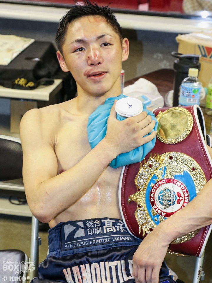 一方、勝利まであとわずかだった栄は「ボディブローは練習していたパンチで手応えがあった。倒してから向こうが攻めてきたのが想定外だった。たくさんの人にサポートしてもらったのに情けない。ジムにベルトを持ち帰りたかったが…」と話し、涙でタオルを濡らした。