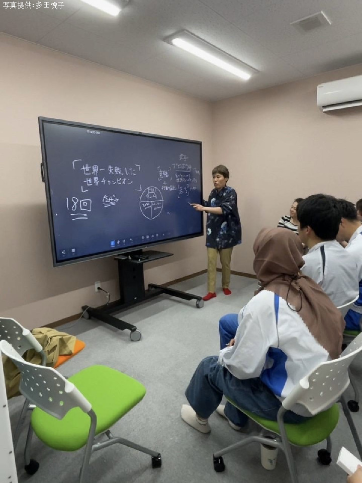 また、多田さんは、約30社の企業にて研修を実施し、メンタルの組み立て方やビジネス・人間としてのあり方を伝えている。多田さんは、「社会に出ると葛藤や誤ったプライドに悩む人が多いが、プライドは必要なく、誇りを持つことが大切」と力強く語った。現在、自らの経験を基に「引退したプロボクサーでもできるような」メソッドの構築に着手中だ。