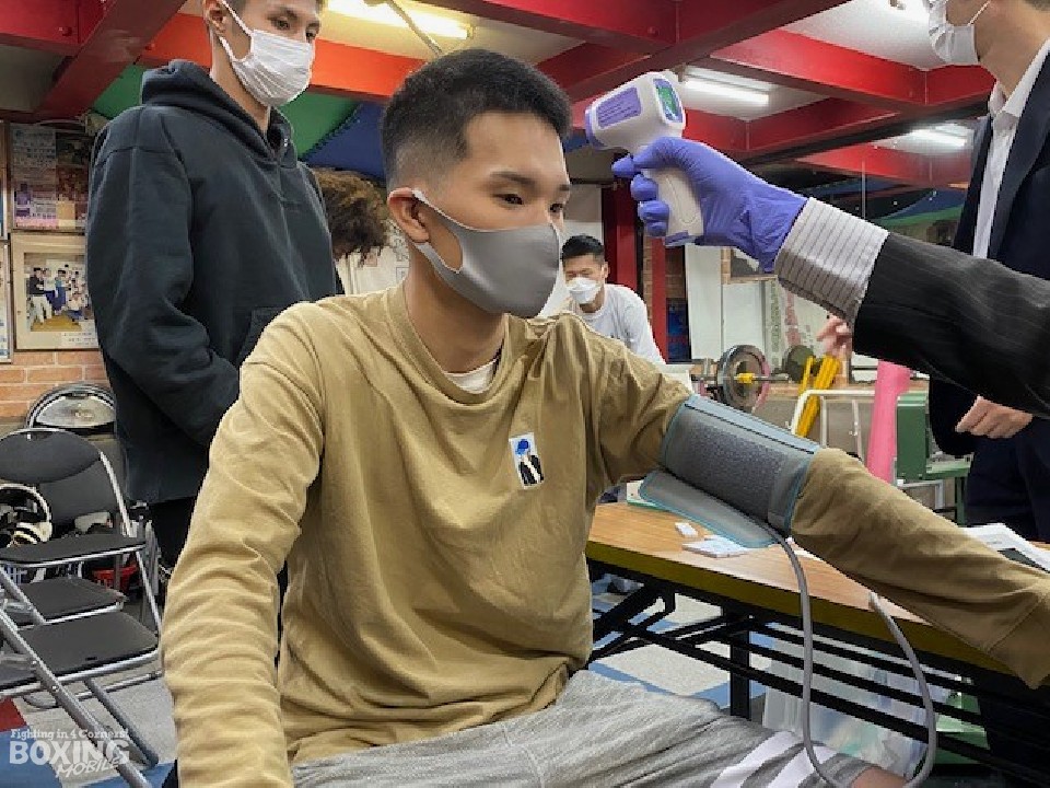 先に秤に乗った岸田は、スーパーフェザー級リミットちょうどの58.9kgでクリア。同階級での試合は、2019年11月の新人王西軍代表決定戦以来、約2年半ぶりとなる。