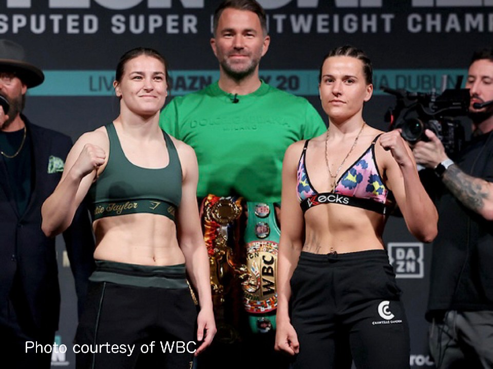 女子世界ライト級4団体統一王者のケイティ・テイラー(36=アイルランド)とスーパーライト級の4団体統一王者のキャンテル・キャメロン(32=英国)がついに激突。アイルランドのダブリンで19日、スーパーライト級の前日計量が行われた。この夢の対決は、テイラーが地元に1階級上で絶対王者に君臨するキャメロンを迎えて挑戦することで実現した。計量は両者揃って、スーパーライト級リミットの63.5kgでクリアした。