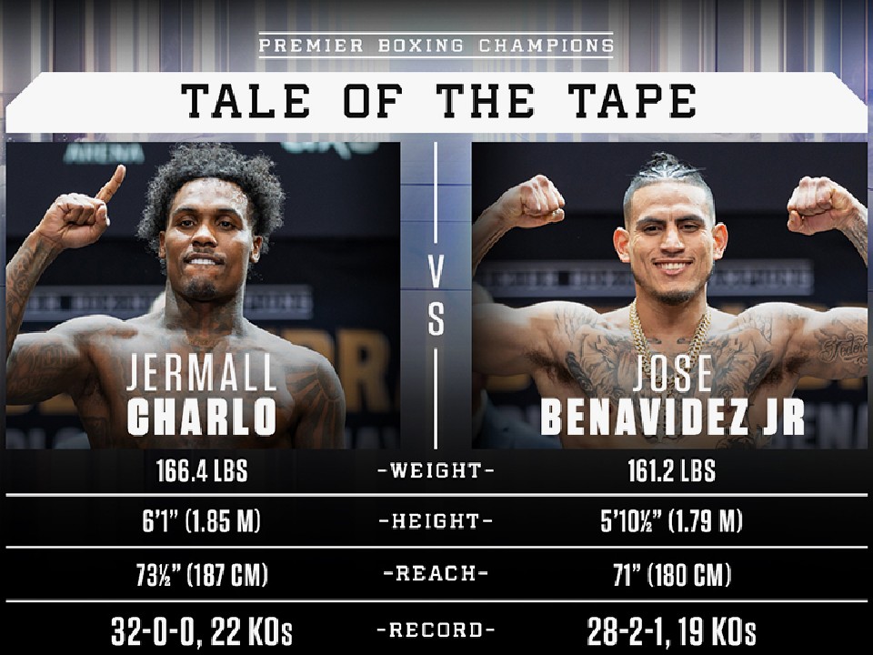 WBCミドル級正規王者ジャモール・チャーロ(33=米)とホセ・ベナビデス.Jr(31=米)による、ミドル級ノンタイトル10回戦がセミファイナル。契約体重を163ポンド(73.9kg)に変更して行われる。