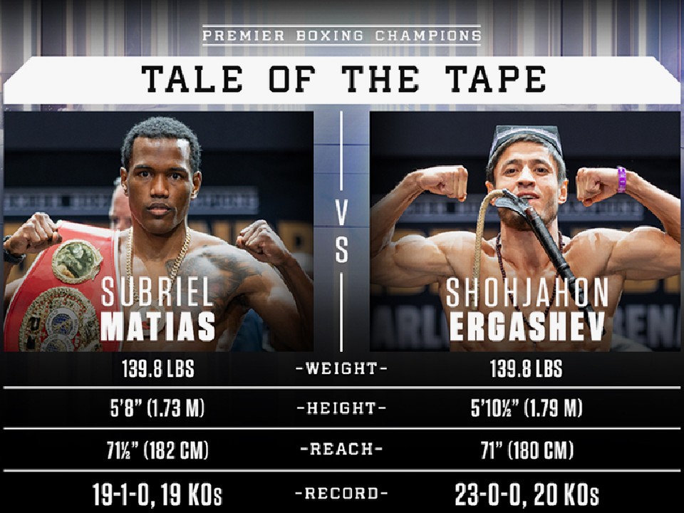 注目カードはまだ続く。IBF(国際ボクシング連盟)スーパーライト級タイトルマッチ、王者サブリエル・マティアス(31=プエルトリコ)と同級3位ショファホン・エルガシェフ(31=ウズベキスタン)の対決も楽しみなカード。