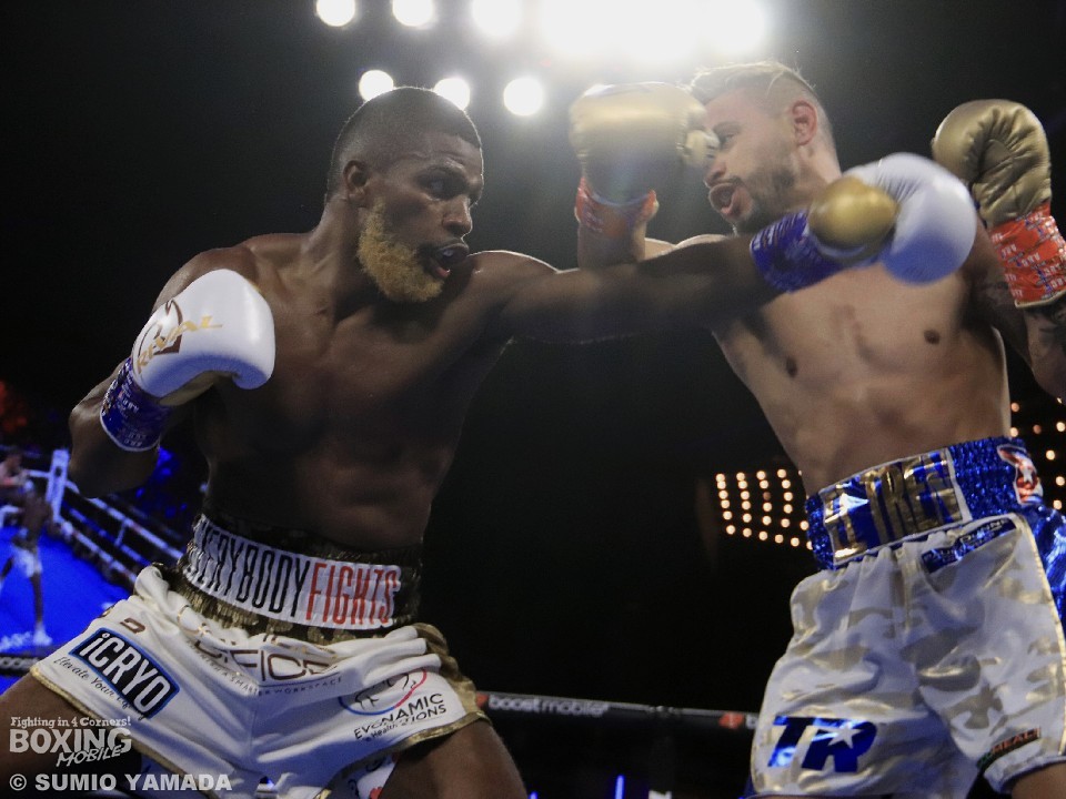 スーパーフェザー級リミットの58.9kgに対して、挑戦者ノバは400gアンダーの58.5kgで難なくクリア。一方、チャンピオンのフォスターは、1回目の計量を0.2lb(約90g)超過したため、下着を脱いでリミットで2回目でクリアした。
