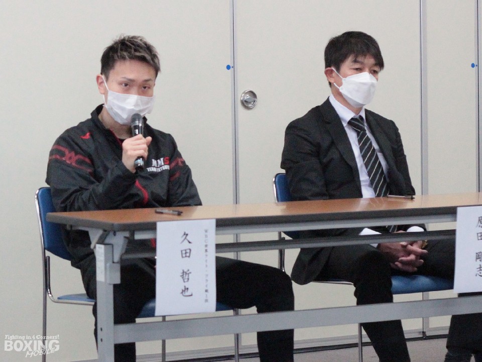 その後、マイクを握った久田は「コンディションも良く気持ちも乗っている。自分が世界チャンピオンになる日が近づいていると思うとワクワクしている。チャンピオンにはいつもの動きをさせない」とやり返した。