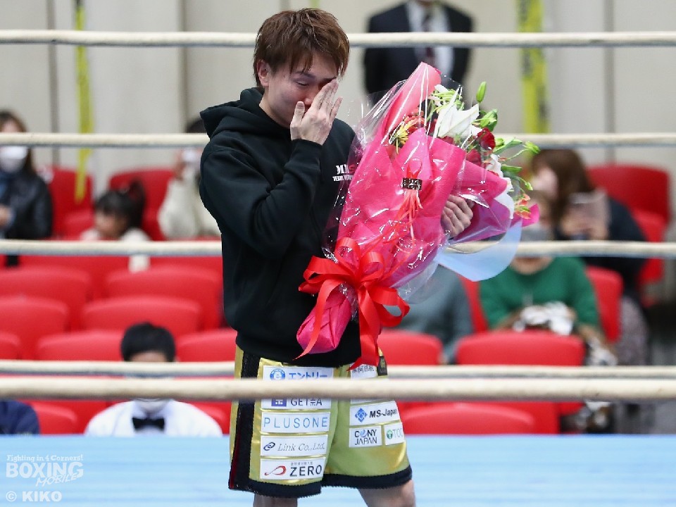 久田は「剛志さん(原田剛志会長)とは、21年間ずっと一緒に過ごしてきて兄貴のような存在でした。プロ47戦で剛志さんと一歩一歩階段を上って世界戦の舞台に立つことができた」と原田会長への思いを語った。