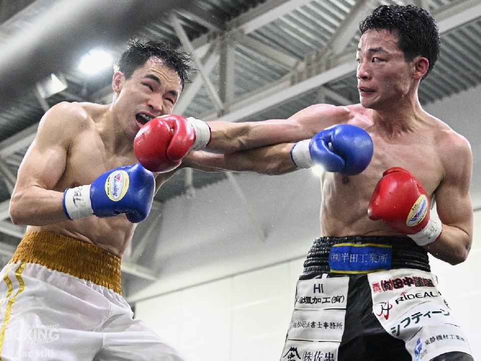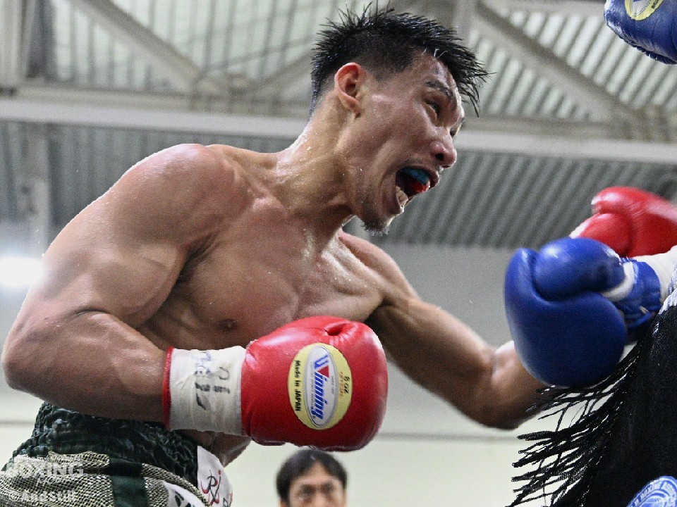 2021年中日本フェザー級新人王の岩下千紘(29=駿河男児)は、58.0s契約8回戦でペン・ファン(33=中国)と激突。頭から突っ込んでくるラフファイターのペンに対し、サウスポー岩下は右フック、ワンツーで出鼻を挫くと7回には左ボディアッパーから連打で攻勢。8回に左アッパーで顔を弾いたところでレフェリーが割って入った。