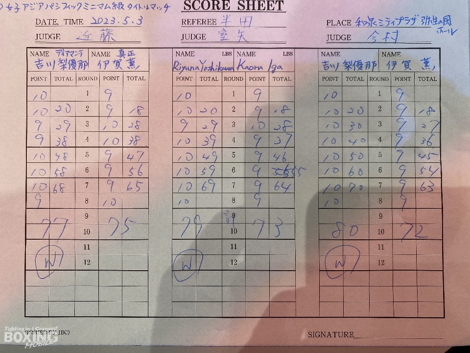 WBOアジアパシフィック女子ミニマム級タイトルマッチ、王者の吉川梨優那(21=ディアマンテ)対挑戦者の伊賀薫(30=真正)の一戦が3日、大阪・和泉シティプラザ弥生の風ホールで開催された「FRESH BOXING×LA FIESTA DEL DIAMNTE」のメインイベントにて行われた。