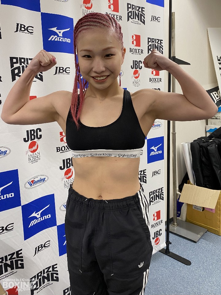 「今までやってきたことをすべてリングで出す。これまで2度タイトル戦で負けているが、この負けがあったからこそ強くなった。これまでの悔しさを喜びに変える」と悲願の王座奪取に覚悟を示した。