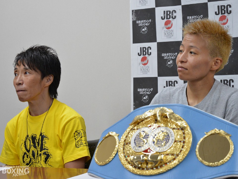 16年6月と17年7月の対戦は、池山の持つWBO女子世界アトム級王座に花形が挑戦したものだが、今回は初めて逆の立場となる。調印後のグローブチェックは両者にイサミ製の黒が渡され、続けて質疑応答が行われた。