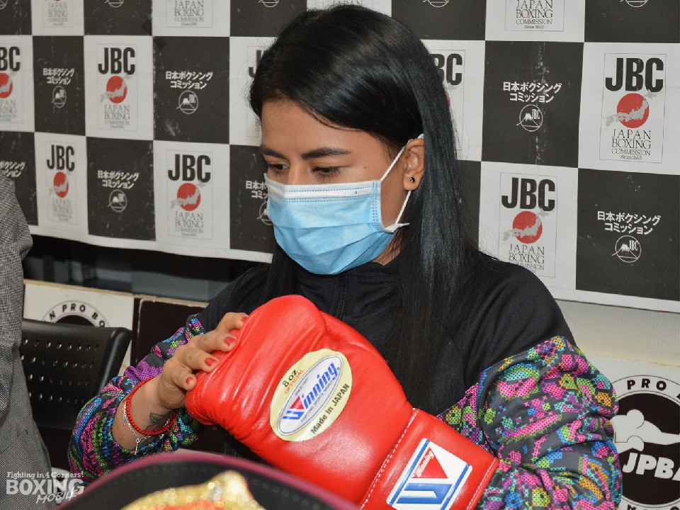 また、同じ日のメインで行われる、IBF(国際ボクシング連盟)女子アトム級王者の花形冴美(34=花形)対前WBO(世界ボクシング機構)女子同級王者の池山直(49=フュチュール)によるIBF王座戦について聞かれ、「私も選手生命が長いわけじゃないので、頑張れる目標を4団体制覇に置いている。明日の試合に勝ち、IBF王者と統一戦がしたい」と希望した。