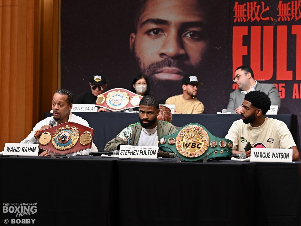 フルトンを指導するワヒィード・ラヒムトレーナーが、井上のテーピングの巻き方に問題があるのではないかと指摘。神経戦を仕掛けてきたフルトン陣営に対し、井上は「すごくナイーブだと思う。これまで24戦やってすべて正々堂々と戦ってきたので、ご心配なく」と冷静に話した。