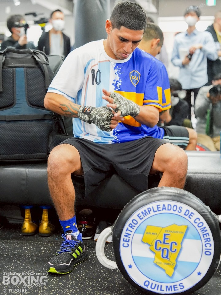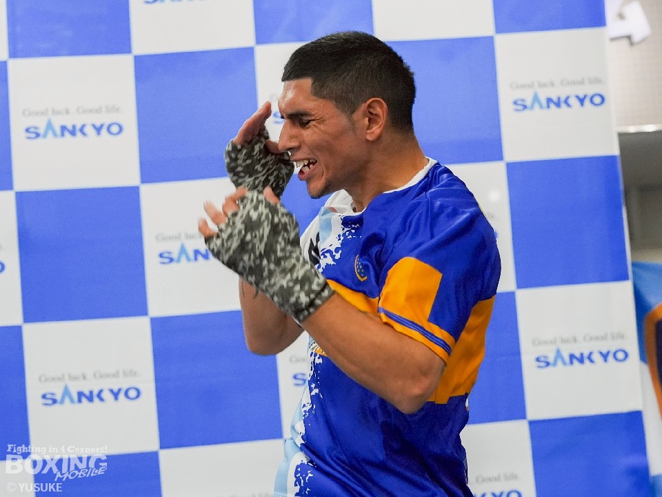 ご機嫌な様子で公開練習前に取材に応じたマルティネスは、「クレバーでパワフルな偉大なチャンピオンと再戦するために、準備をしてきた」と、井岡一翔を称え、海外メディアなどで取り上げられていたWBC(世界ボクシング評議会)同級王者のジェシー・ロドリゲス(25=米国)との王座統一戦は、話し合いの折り合いがつかなかったとし、改めて、自身にとっては、井岡が試合を優先すべきライバルとの認識を示し、「日曜日の試合に集中している」と、気持ちを込めた。これには、会見に同席したロドリゴ・カラブレッセ・マネージャーも同調し、最初から井岡との再戦を最優先に考えていたことを明かした。