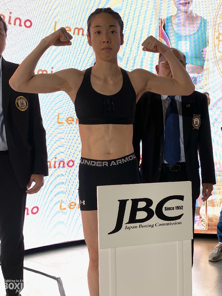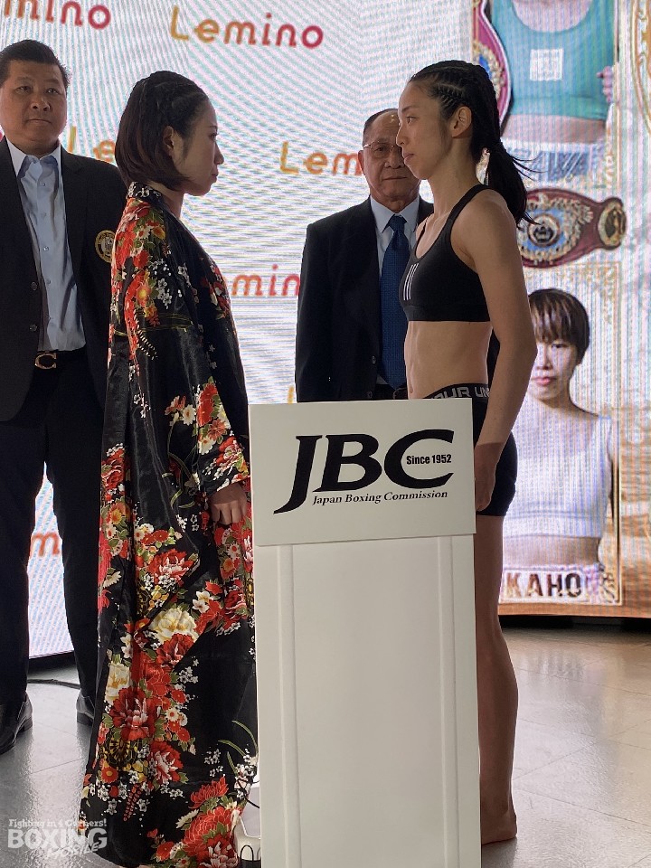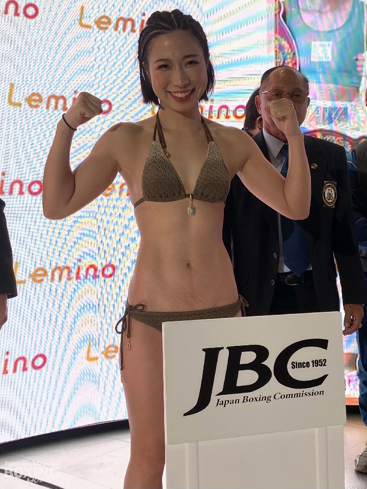 WBA(世界ボクシング協会)ミニマム級王座決定戦の前日計量が20日、都内のドーム内blue-ingで行われ、同級1位の黒木優子(33=真正)とソ・リョギョン(33=韓国)が計量に臨んだ。