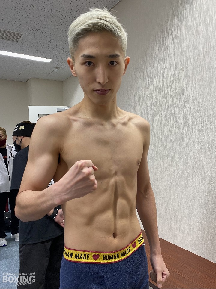 拳を交える山口は、100gアンダーの52.0sで秤を降りた。A級初戦で3戦目でのユース王座挑戦に「順調にキャリアを重ねている。ここもしっかりと勝ちたい」と自信を示した。「中垣選手と戦えることがうれしい。明日は楽しんで戦う。プロでは違うところを見せたい」と、アマチュア時代の借りを返すつもりだ。
