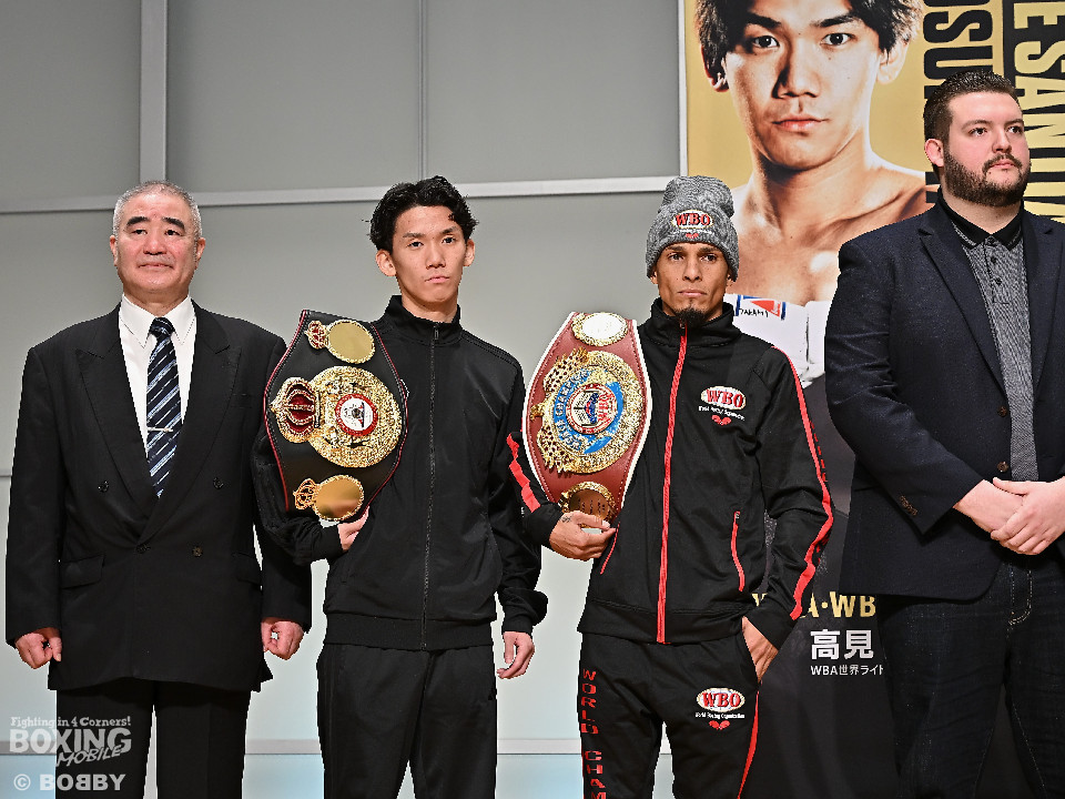 高見亨介vsサンティアゴ! ライトフライ級王座統一戦。両王者が静かに火花
