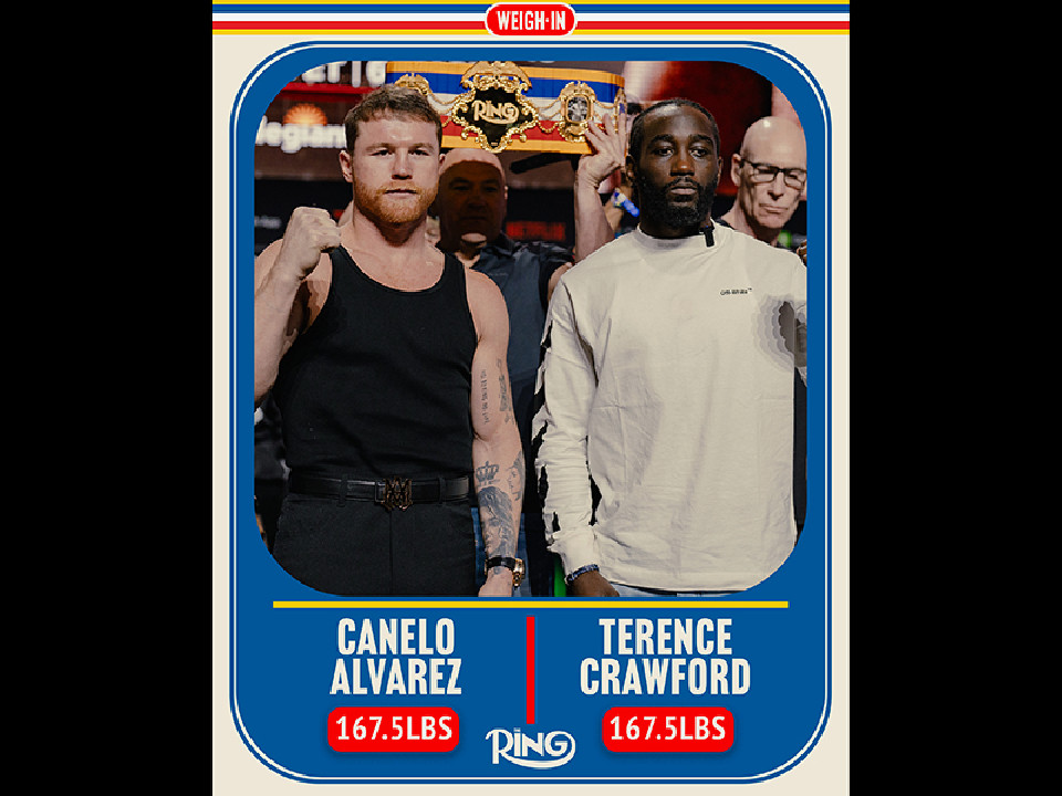 世界スーパーミドル級4冠統一王者サウル“カネロ”アルバレス(35=メキシコ)に、2階級で4団体制覇を達成したWBO世界同級1位テレンス・クロフォード(37=米)が挑むメガファイトが開催される。日本時間の14日、米国・ラスベガスのアレジアント・スタジアムで、その前日計量が同会場で行わた。