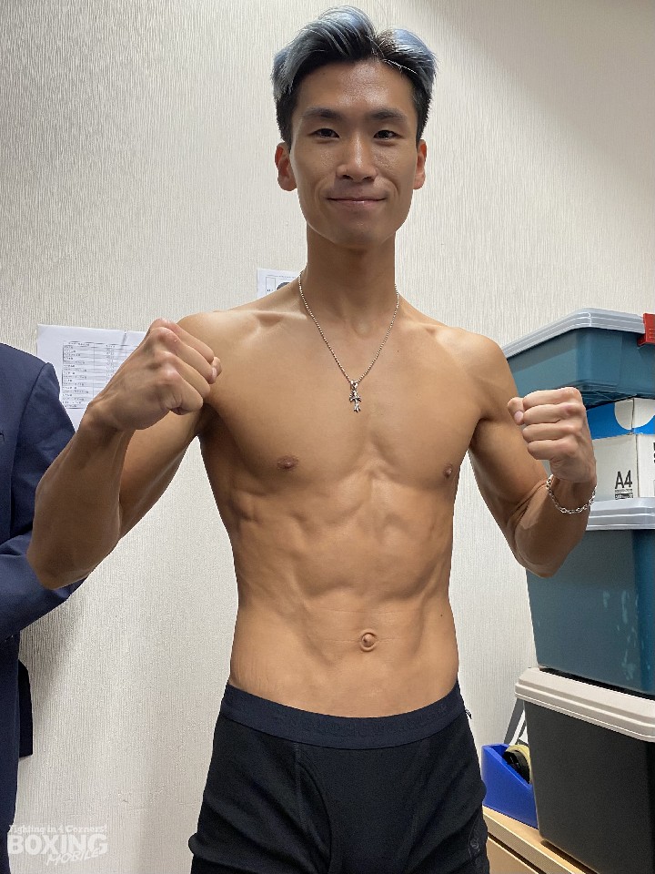 計量後、取材に応じたシムは、「藤田はスピードがある強い選手だが、楽しんで戦いたい。同門のユン(ユン・ドクノ=OPBF東洋太平洋・WBOアジアパシフィック・スーパーミドル級統一王者)に続き、自分もチャンピオンになる」と言葉に力を込めた。