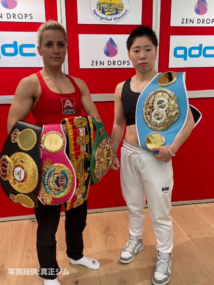 アトム級世界主要4団体(WBA/WBC/IBF/WBO)統一戦の前日計量が日本時間の4日、ドイツのポツダムで行われ、日本から遠征しているWBO王者の山中菫(23=真正)は45.6kgでクリア、WBA、WBC、IBF3団体統一王者のティナ・ルプレヒト(32=独)も45.9kgで、両者ともキッチリ仕上げてきた。