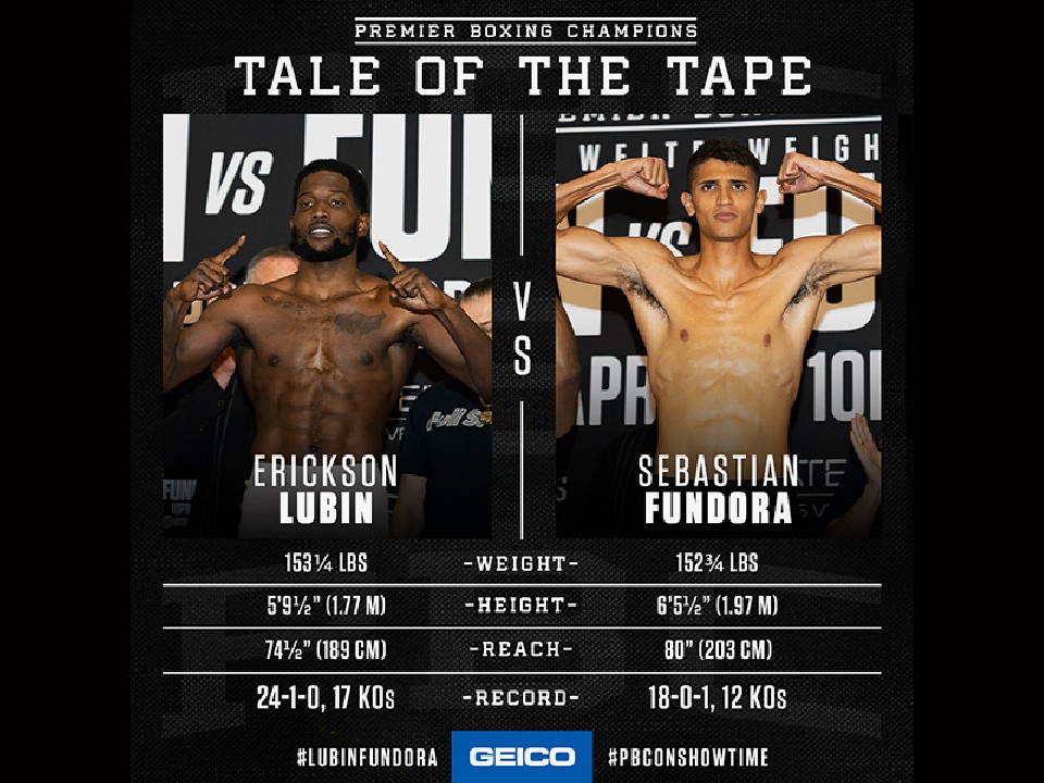 WBC(世界ボクシング評議会)スーパーウェルター級暫定王座決定戦の前日計量が8日、試合会場と同じ米国・ネバダ州ラスベガスのヴァージンホテルズ・ラスベガスで行われ、ランキング1位のエリクソン・ルービン(26=米)と、同2位のセバスチャン・フンドラ(24=米)が顔を揃えた。