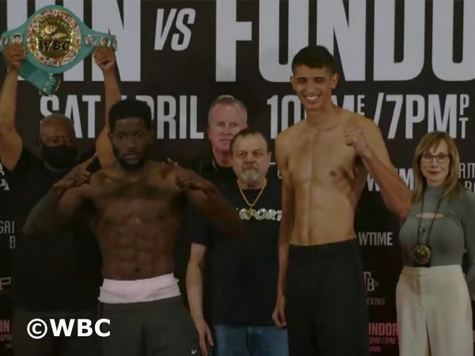 スーパーウェルター級リミット69.8kgに対して、ルービンは400g少ない69.4kgでクリア。一方、フンドラは600gアンダーの69.2kgで秤を降りた。