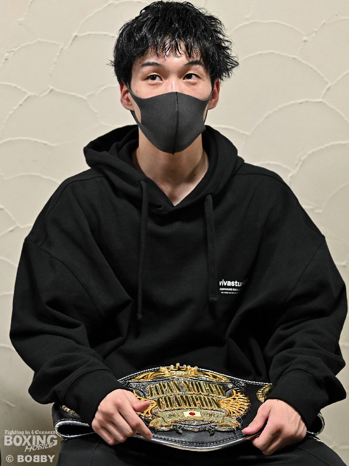 「ベルトを触りましたがサラサラしていますね」。試合後の囲み会見で日本ユース王座のベルトに初めて触れて感想を語った。2017年8月に初代日本ユース王者が誕生してから4年2ヶ月目で4人目の日本ユースバンタム級王者が誕生した。