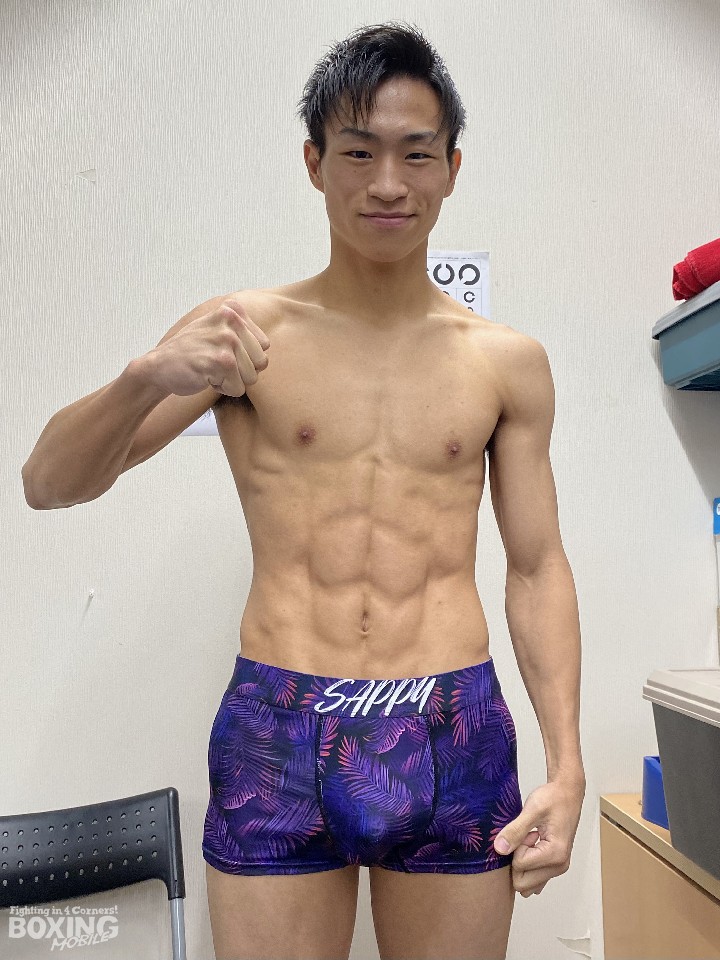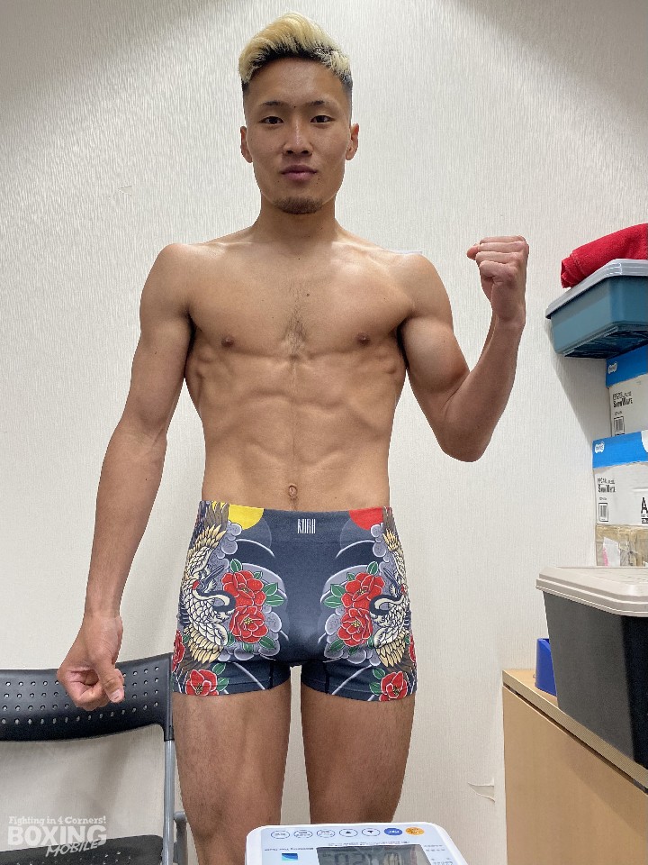 A級初戦でユース王座に挑む小松は、ライト級リミットを600g下回る60.6sでクリアした。計量後、取材に応じた小松は「相手はガツガツと前に出てくるタイプ。捌くのが理想だが、打ち合う場面も出てくると思う」と覚悟を示すと、「ライト級に上げてから全体的にパワーアップした。ポイントを取りつつ、チャンスが来たら仕留めに行く」と意気込んだ。