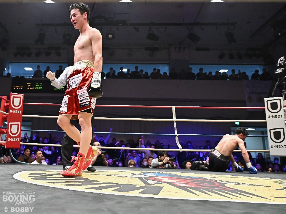 帝拳ジムの大和心トレーナーも「途中から距離を潰した方がいいと変更した。途中から相手のパワーがなくなっているのも感じた」と語った。