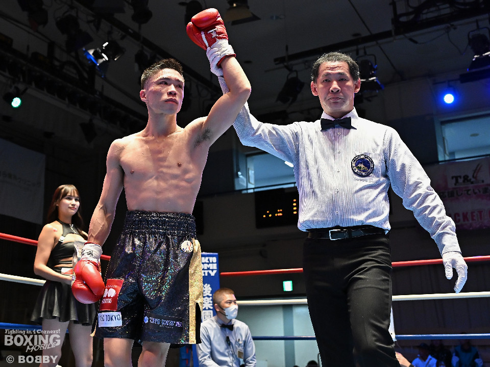 序盤は、稲元がサウスポーにスイッチして左オーバーハンドを叩きつけると足を使ったメリハリのある攻撃でペースを掌握。しかし、渋谷は3回に右ボディアッパーで流れを変えると、右フックでダウンを奪った。その後も渋谷は左ボディを徹底的に叩き、攻勢を強めたが、稲元も負けじとパンチを返した。終盤は、お互いの意地が真っ向からぶつかり合う壮絶な打撃戦に発展。どちらが倒れてもおかしくないほどの総力戦を繰り広げた採点は割れたが、稲元に軍配が上がった。