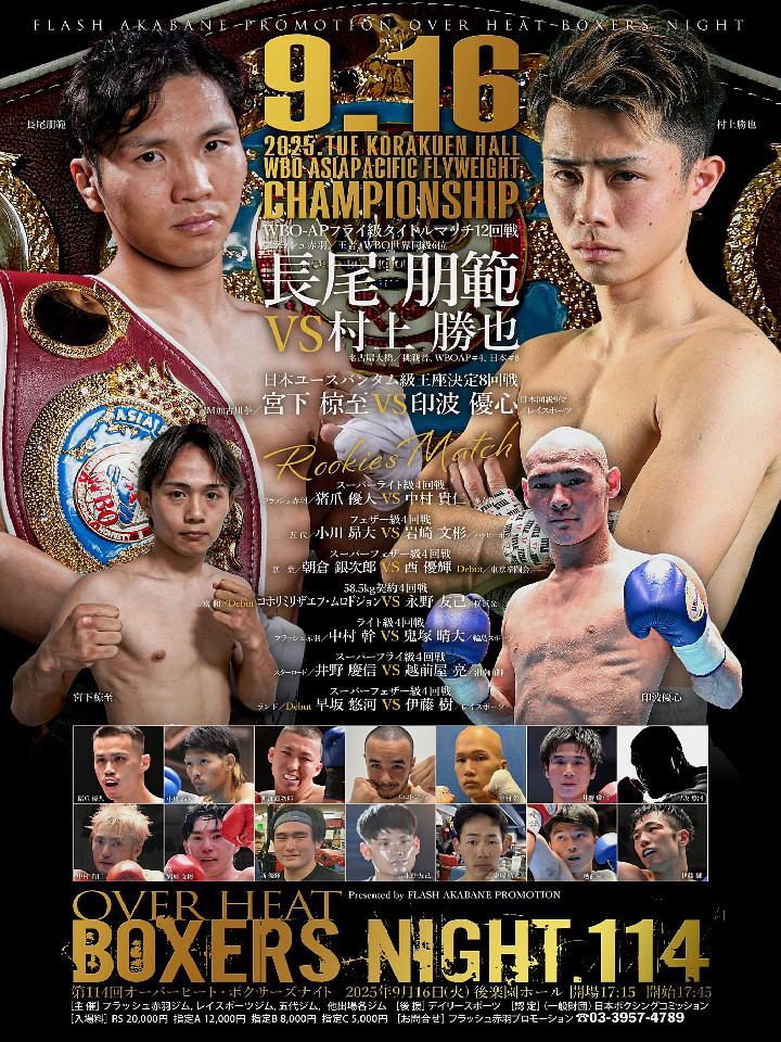 坂井から王座を奪えなかった宮下が雪辱を果たすのか、勢いに乗る印波が初戴冠を飾るのか。注目のユース王座決定戦は、9月16日(火)後楽園ホール「OVER HEAT BOXERS NIGHT.113」でゴングを迎える。