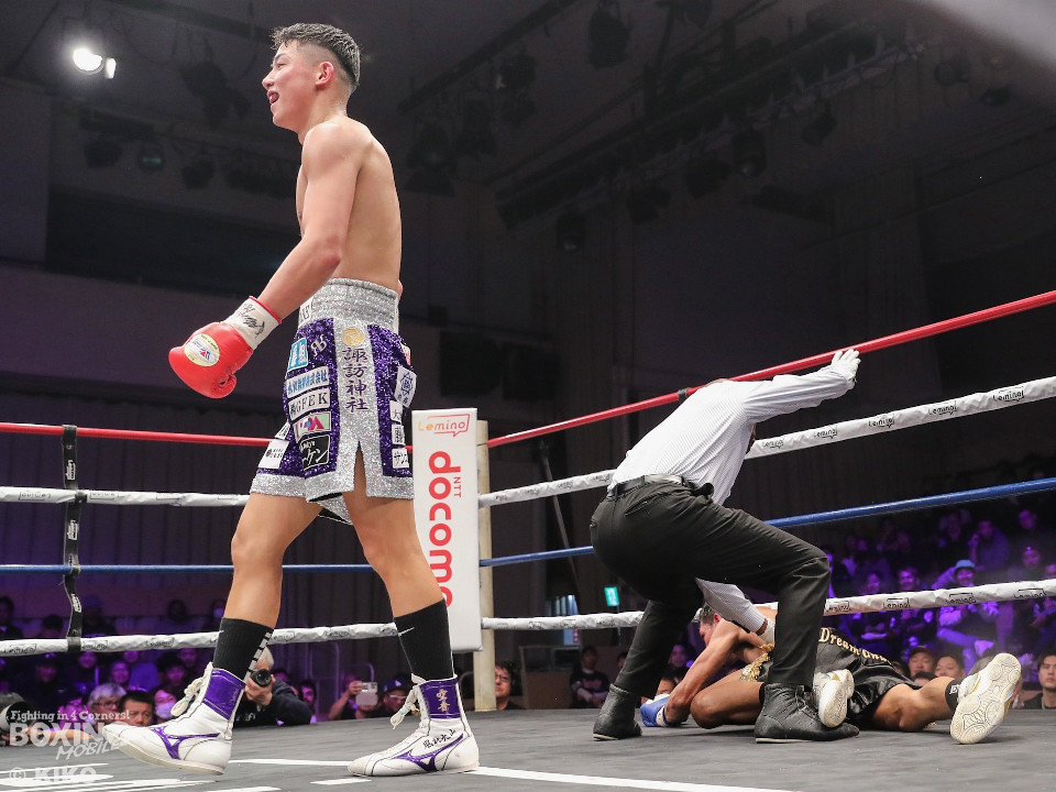 渡邊はジャブを軸にペースを掌握。左ボディから左アッパーを決めると、強弱を意識して攻勢。スラサックも粘り強く返して、最終ラウンドへ。このまま判定決着かと思われたが、渡邊は左ボディを突き刺し、スラサックをロープに詰めて右アッパーで倒した。