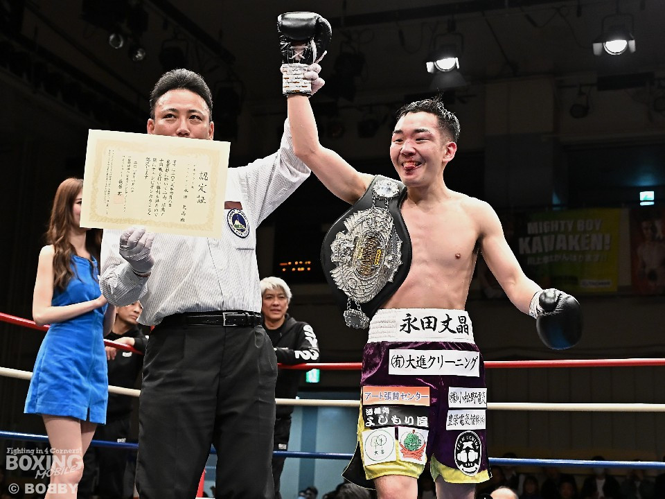 プロキャリア初期から場所を問わず強豪と拳を交え、下剋上を重ねて一気に日本王者まで駆け上がった。「自分で言うのもアレだが、よくやったと思う」。アウェー戦も3戦全勝と、永田の勝負強さは際立っていた。