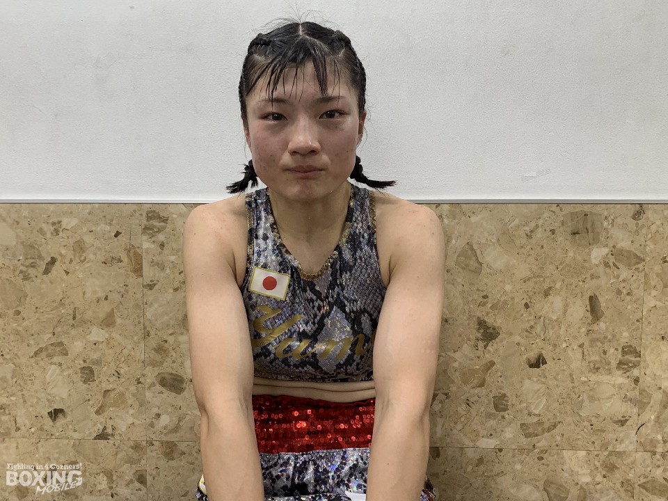 「(古川選手は)もっとジャブを突いて、足で捌いてくるかと思っていたが、最初から出てきたので1〜2ラウンドを取られてしまった。しかし、セコンドの声を聞いて、冷静に戦えたところは良かったと思う。相手がどうこうというよりも、自分の長所を伸ばしていくことを心がけた」と激戦を振り返った。